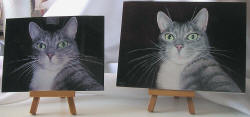 Hiernaast ziet u twee voorbeelden van een foto en het schilderij zoals het geworden is.
